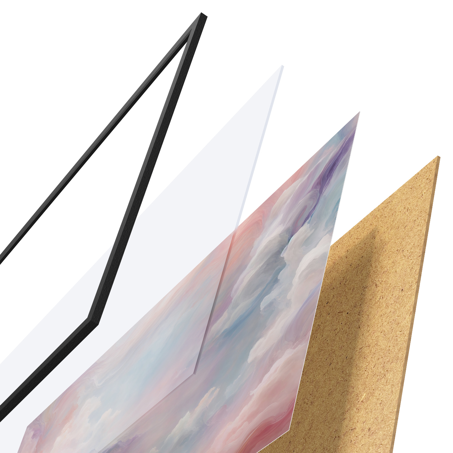Plakatą sudaro rėmas, pleksiklas, atspausdintas vaizdas ir medžio drožlių plokštės pagrindas. Plakatą galima iš karto pakabinti ant sienos dėl kitoje pusėje esančių laikiklių.