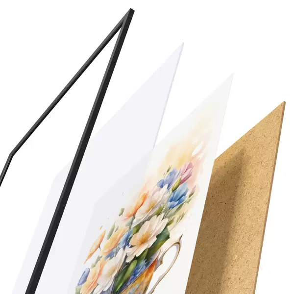 Plakatą sudaro rėmas, pleksiklas, atspausdintas vaizdas ir medžio drožlių plokštės pagrindas. Plakatą galima iš karto pakabinti ant sienos dėl kitoje pusėje esančių laikiklių.