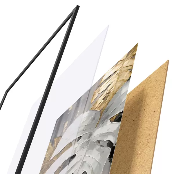 Plakatą sudaro rėmas, pleksiklas, atspausdintas vaizdas ir medžio drožlių plokštės pagrindas. Plakatą galima iš karto pakabinti ant sienos dėl kitoje pusėje esančių laikiklių.