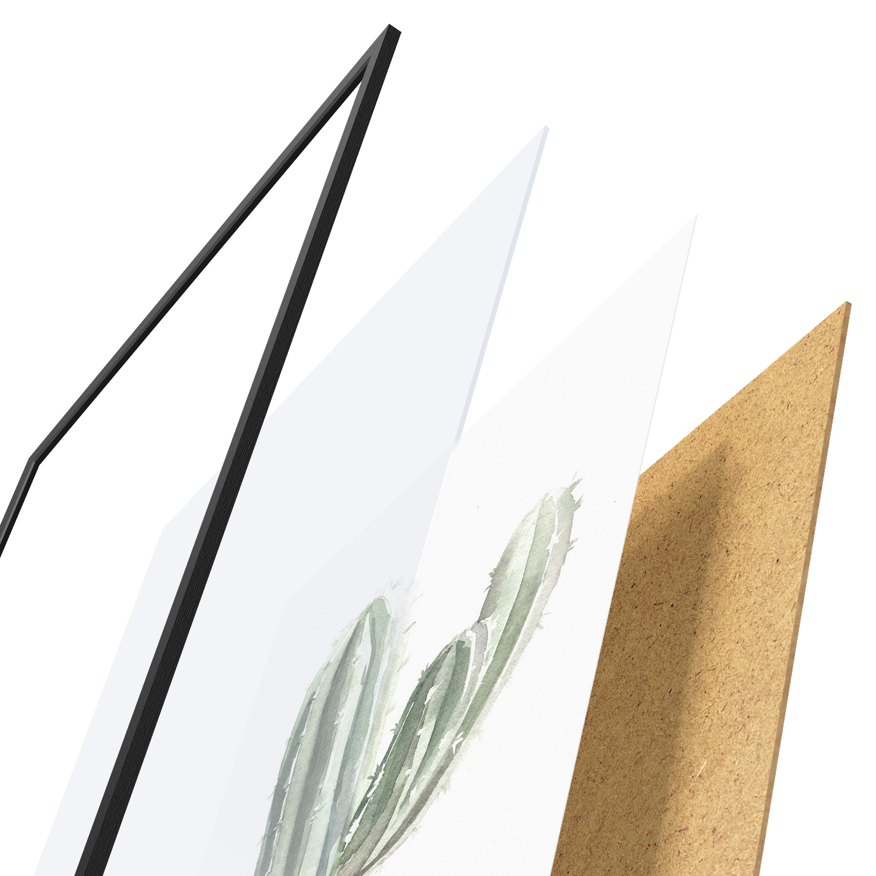 Plakatą sudaro rėmas, pleksiklas, atspausdintas vaizdas ir medžio drožlių plokštės pagrindas. Plakatą galima iš karto pakabinti ant sienos dėl kitoje pusėje esančių laikiklių.