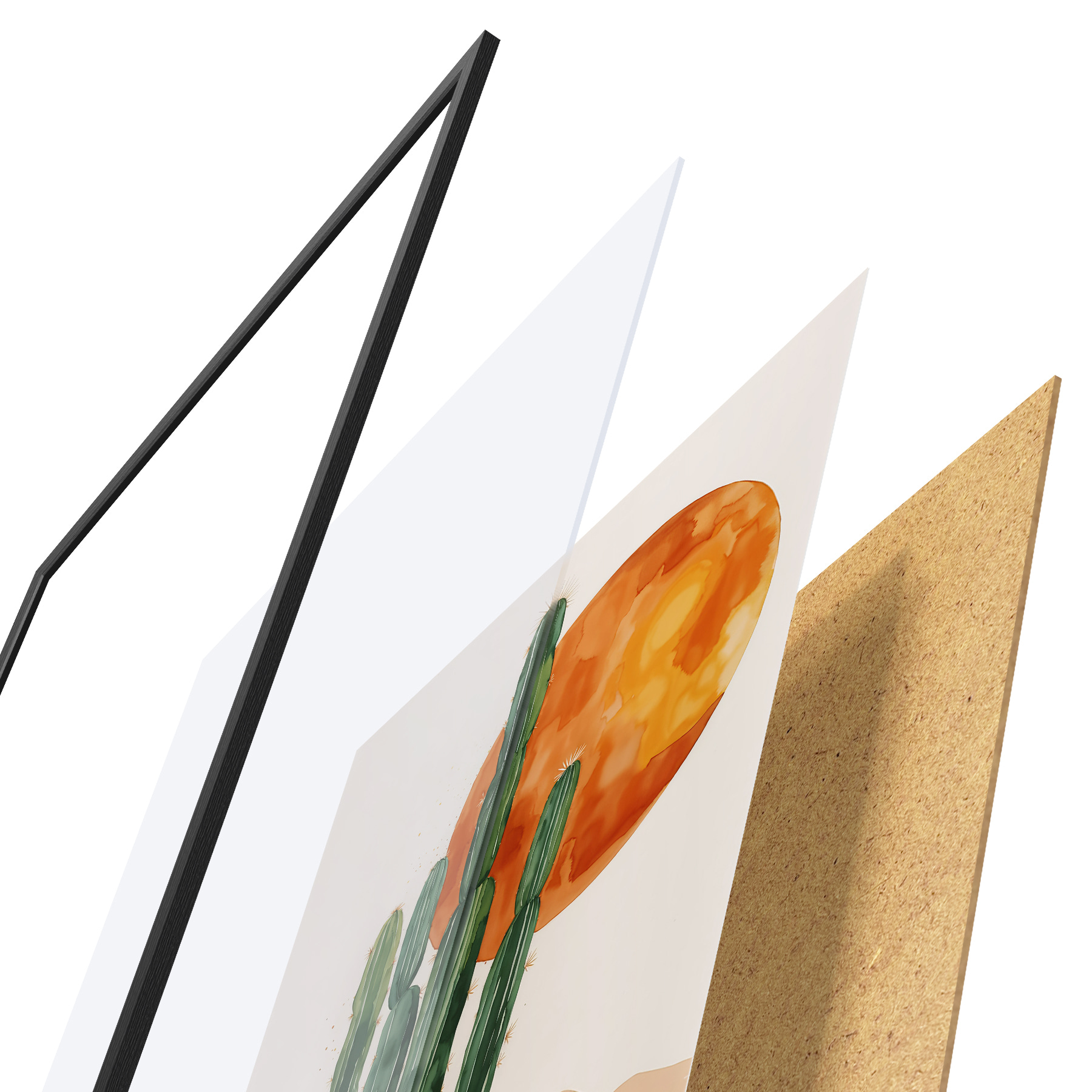 Plakatą sudaro rėmas, pleksiklas, atspausdintas vaizdas ir medžio drožlių plokštės pagrindas. Plakatą galima iš karto pakabinti ant sienos dėl kitoje pusėje esančių laikiklių.