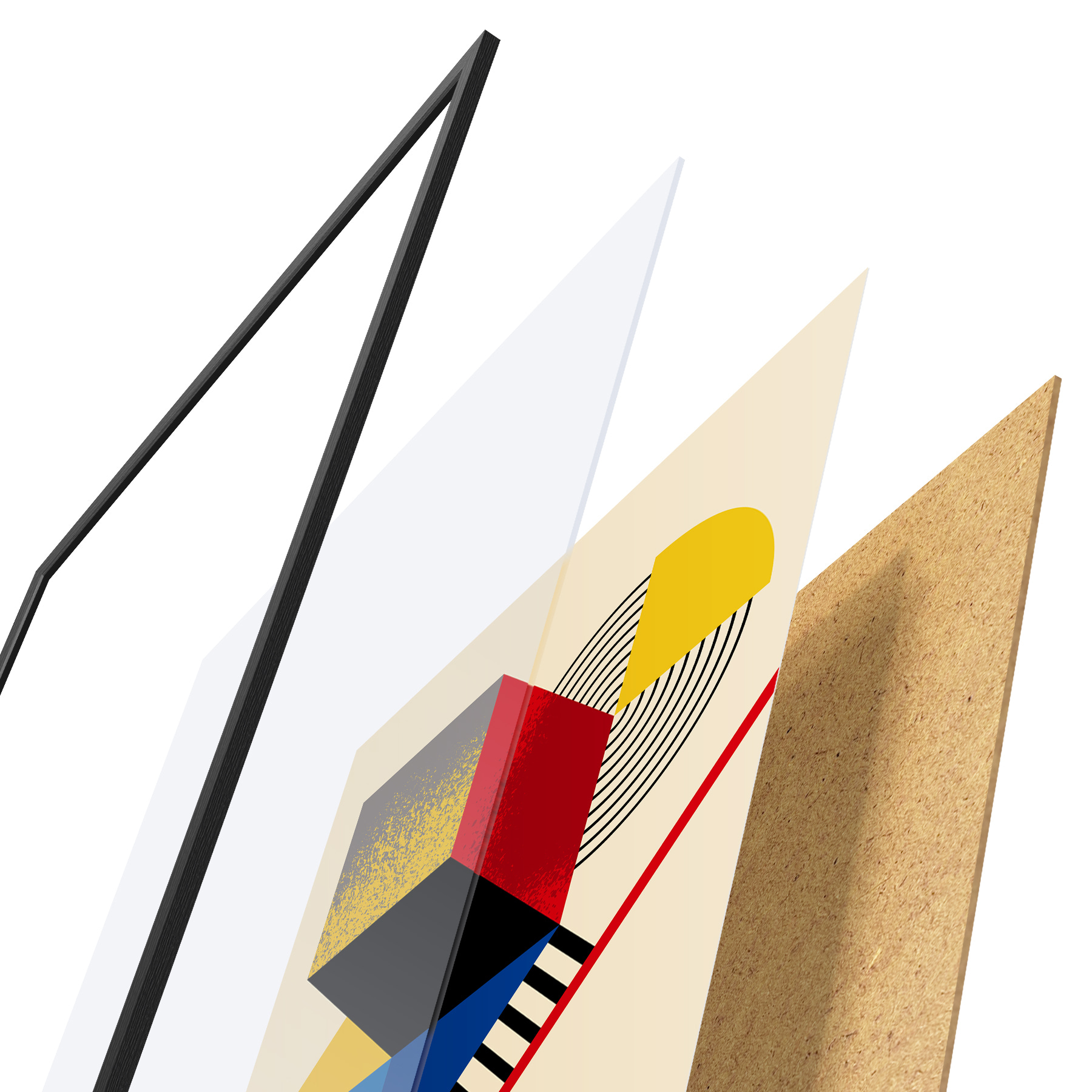 Plakatą sudaro rėmas, pleksiklas, atspausdintas vaizdas ir medžio drožlių plokštės pagrindas. Plakatą galima iš karto pakabinti ant sienos dėl kitoje pusėje esančių laikiklių.