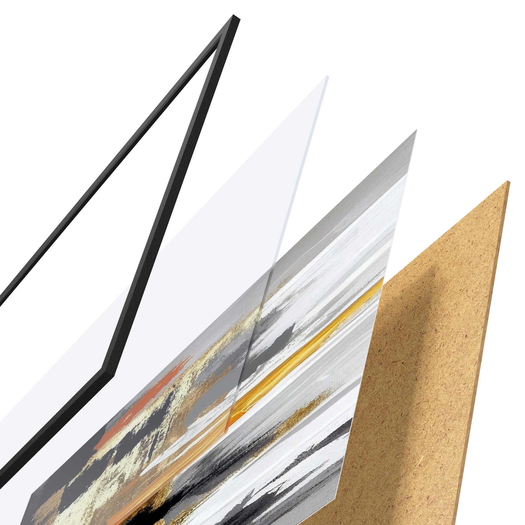 Plakatą sudaro rėmas, pleksiklas, atspausdintas vaizdas ir medžio drožlių plokštės pagrindas. Plakatą galima iš karto pakabinti ant sienos dėl kitoje pusėje esančių laikiklių.