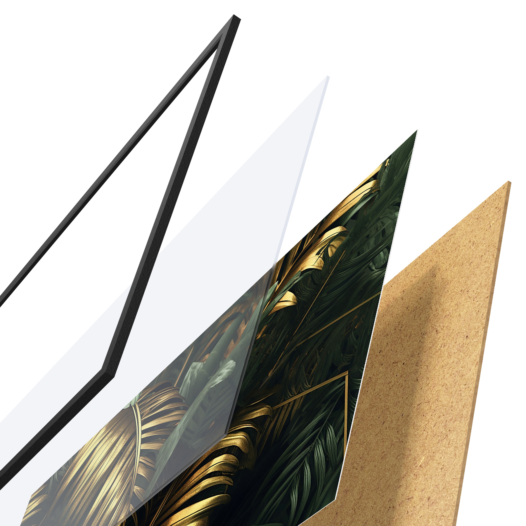 Plakatą sudaro rėmas, pleksiklas, atspausdintas vaizdas ir medžio drožlių plokštės pagrindas. Plakatą galima iš karto pakabinti ant sienos dėl kitoje pusėje esančių laikiklių.
