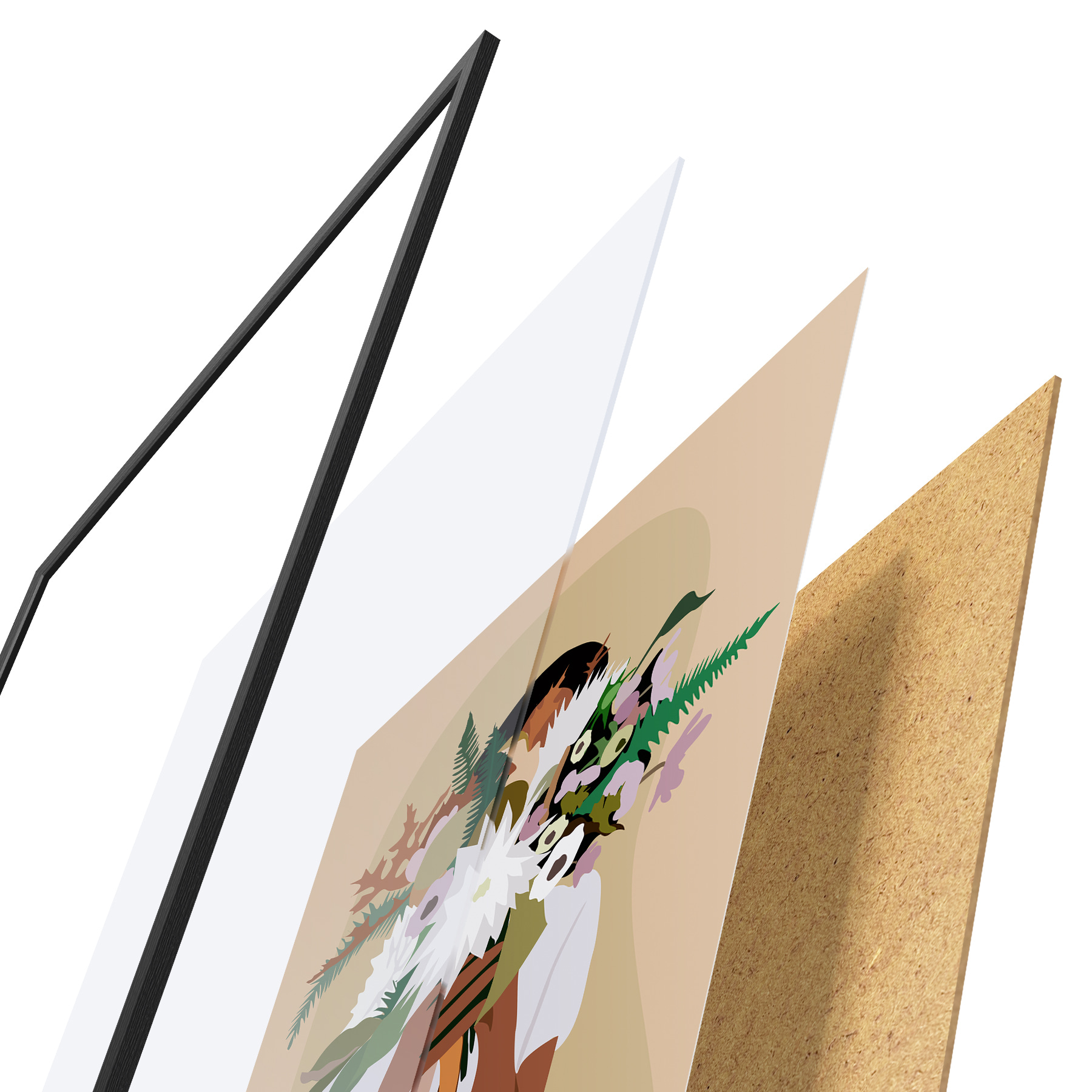 Plakatą sudaro rėmas, pleksiklas, atspausdintas vaizdas ir medžio drožlių plokštės pagrindas. Plakatą galima iš karto pakabinti ant sienos dėl kitoje pusėje esančių laikiklių.