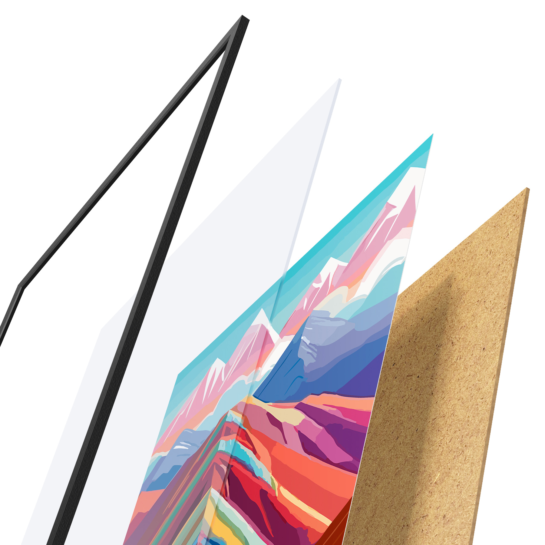 Plakatą sudaro rėmas, pleksiklas, atspausdintas vaizdas ir medžio drožlių plokštės pagrindas. Plakatą galima iš karto pakabinti ant sienos dėl kitoje pusėje esančių laikiklių.