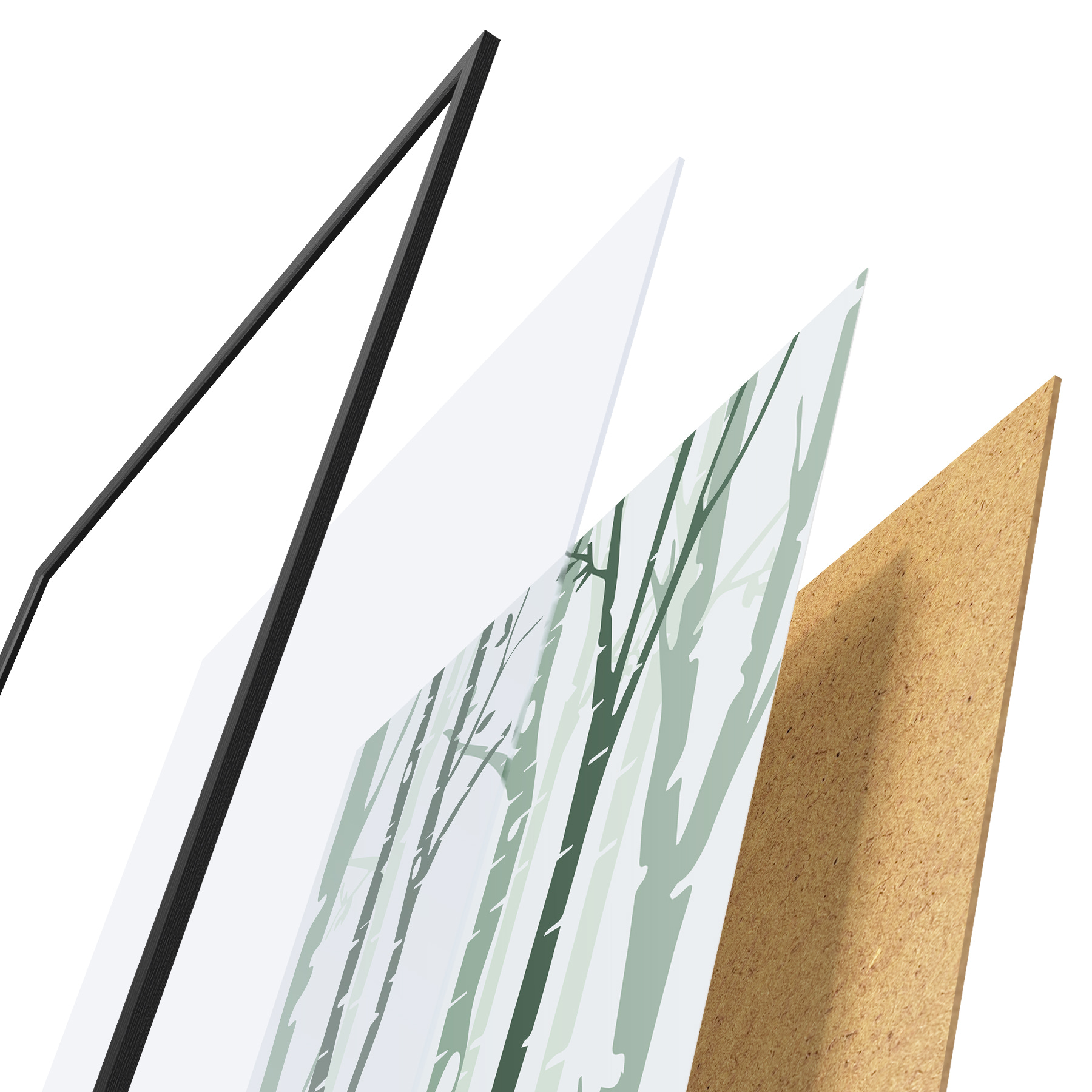 Plakatą sudaro rėmas, pleksiklas, atspausdintas vaizdas ir medžio drožlių plokštės pagrindas. Plakatą galima iš karto pakabinti ant sienos dėl kitoje pusėje esančių laikiklių.