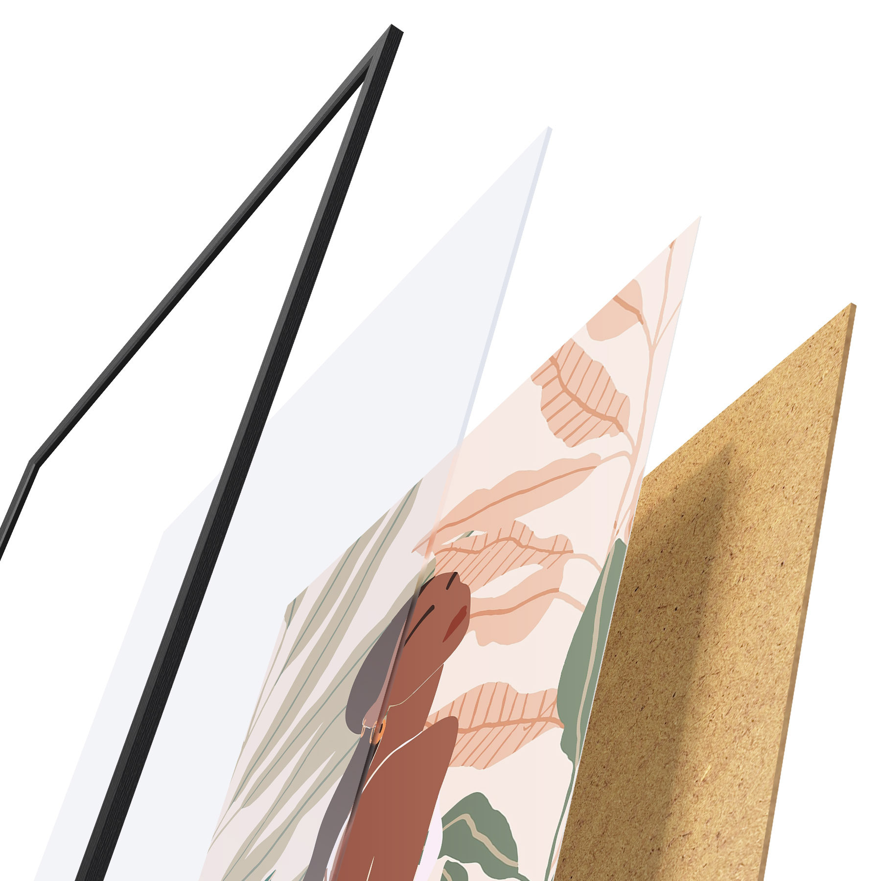 Plakatą sudaro rėmas, pleksiklas, atspausdintas vaizdas ir medžio drožlių plokštės pagrindas. Plakatą galima iš karto pakabinti ant sienos dėl kitoje pusėje esančių laikiklių.