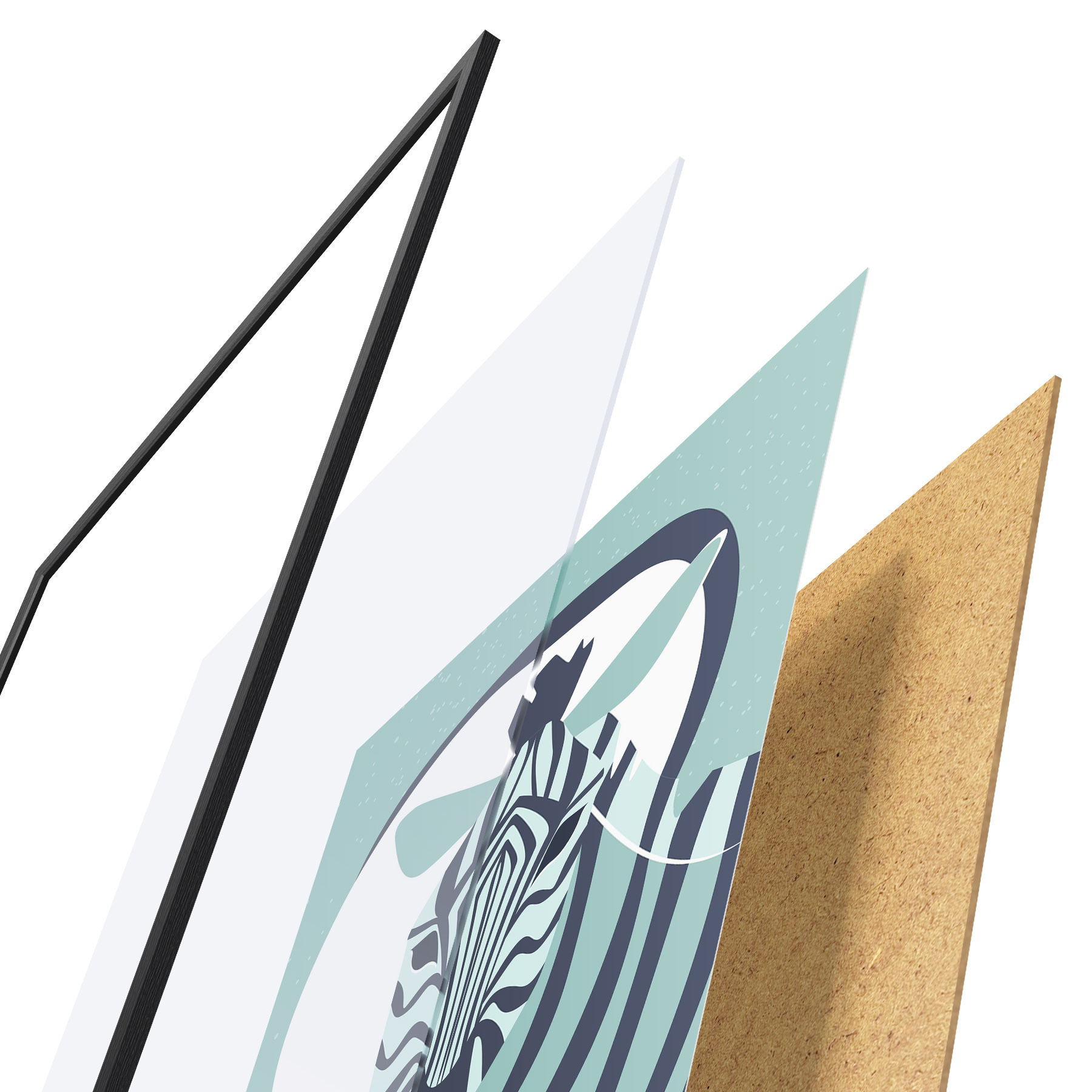 Plakatą sudaro rėmas, pleksiklas, atspausdintas vaizdas ir medžio drožlių plokštės pagrindas. Plakatą galima iš karto pakabinti ant sienos dėl kitoje pusėje esančių laikiklių.