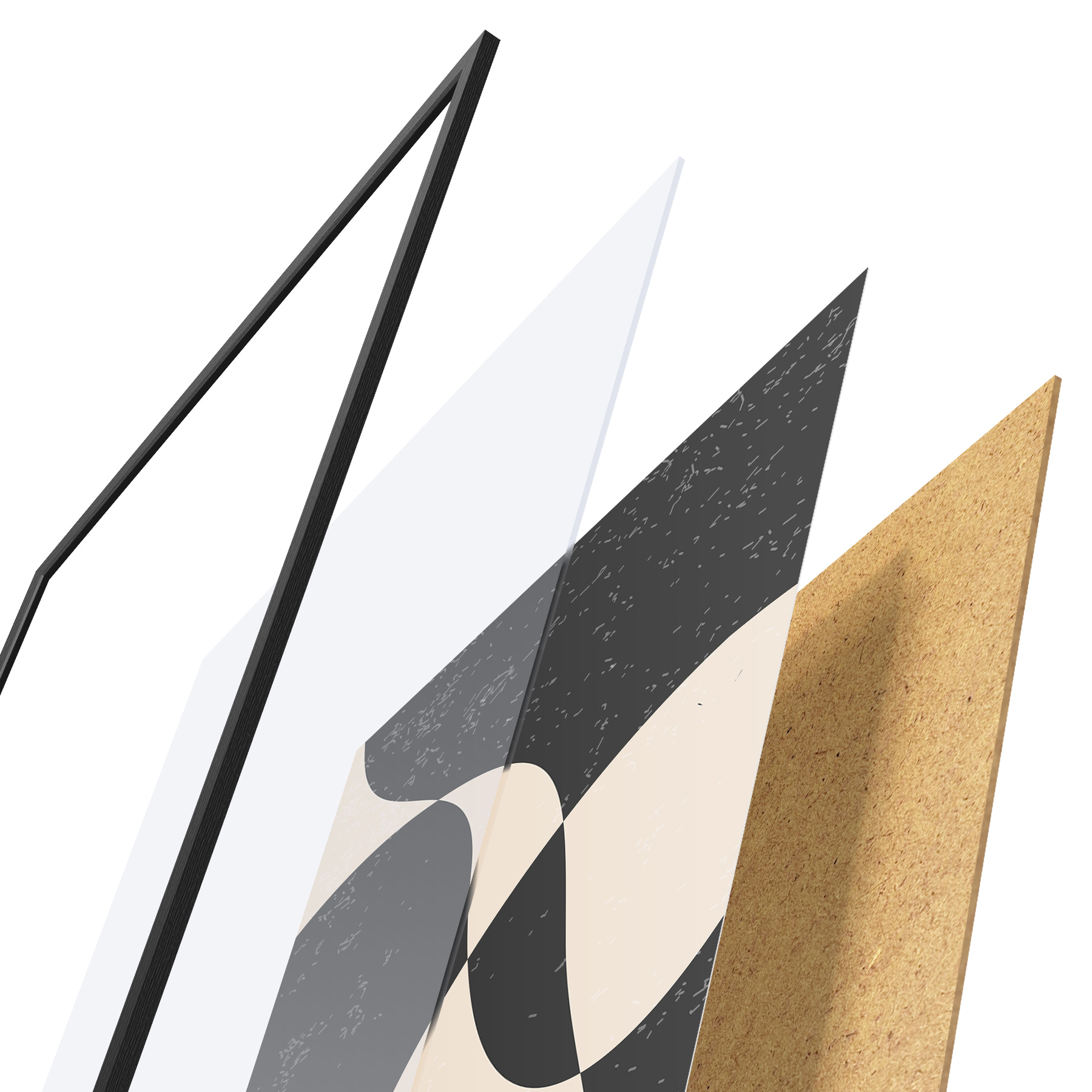 Plakatą sudaro rėmas, pleksiklas, atspausdintas vaizdas ir medžio drožlių plokštės pagrindas. Plakatą galima iš karto pakabinti ant sienos dėl kitoje pusėje esančių laikiklių.