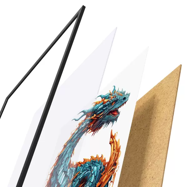 Plakatą sudaro rėmas, pleksiklas, atspausdintas vaizdas ir medžio drožlių plokštės pagrindas. Plakatą galima iš karto pakabinti ant sienos dėl kitoje pusėje esančių laikiklių.