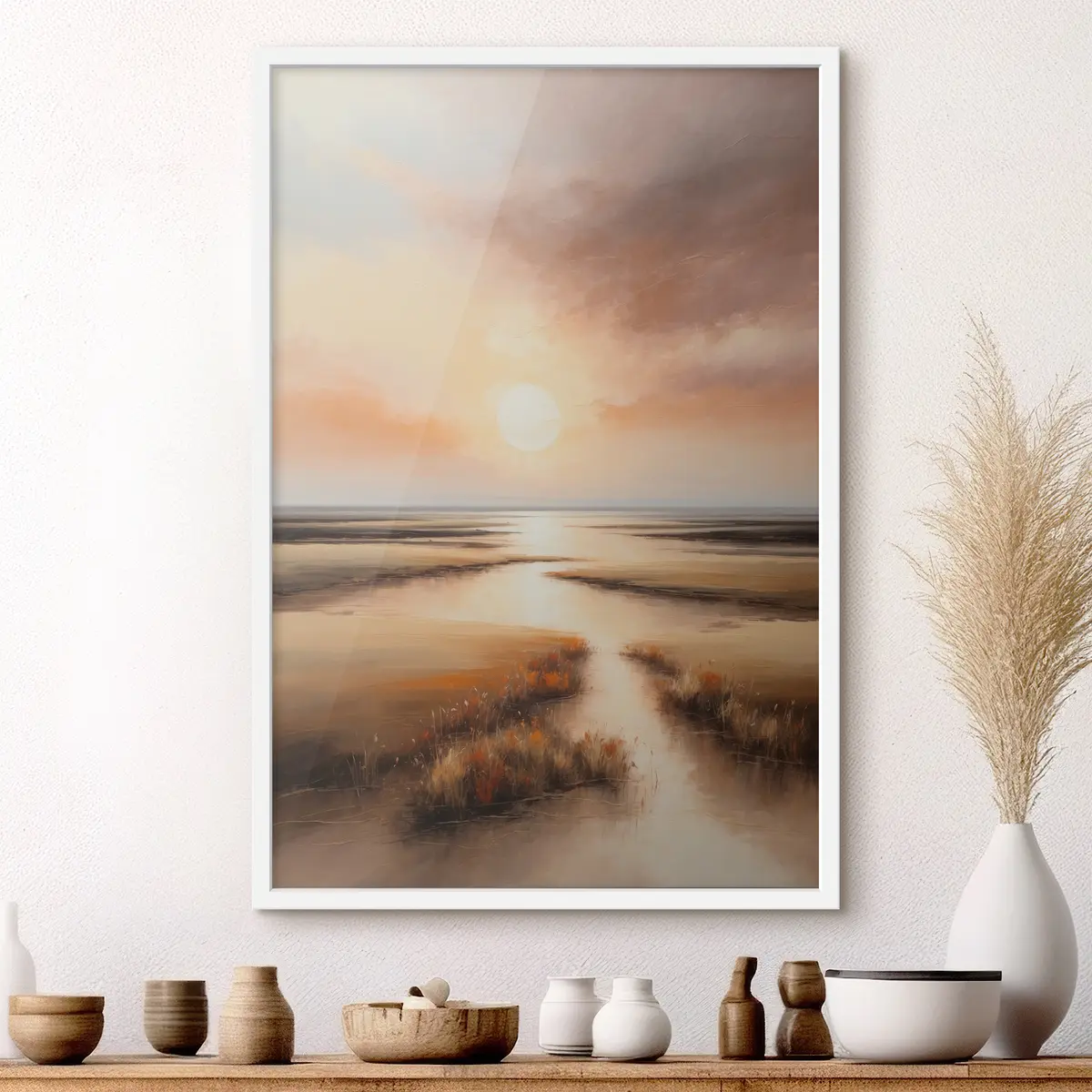 Plakatas Saulėlydis virš ramaus vandens kraštovaizdžio grožio f36436