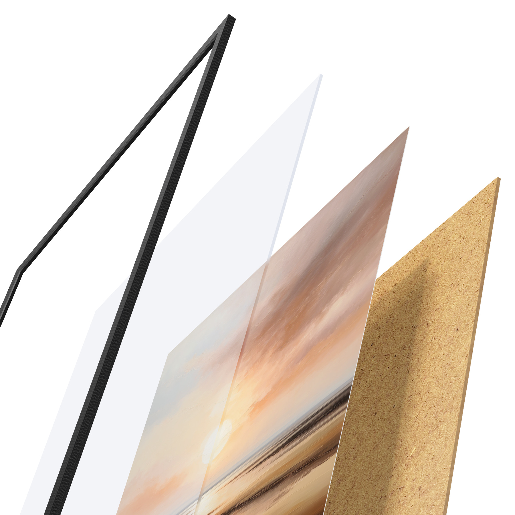 Plakatą sudaro rėmas, pleksiklas, atspausdintas vaizdas ir medžio drožlių plokštės pagrindas. Plakatą galima iš karto pakabinti ant sienos dėl kitoje pusėje esančių laikiklių.
