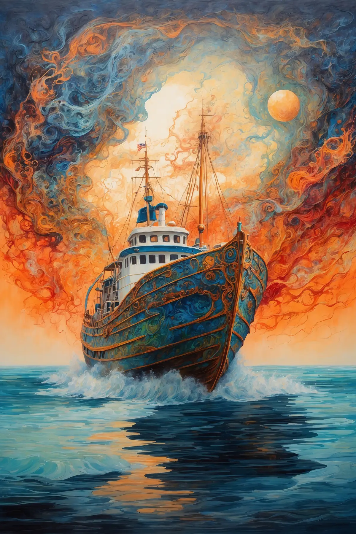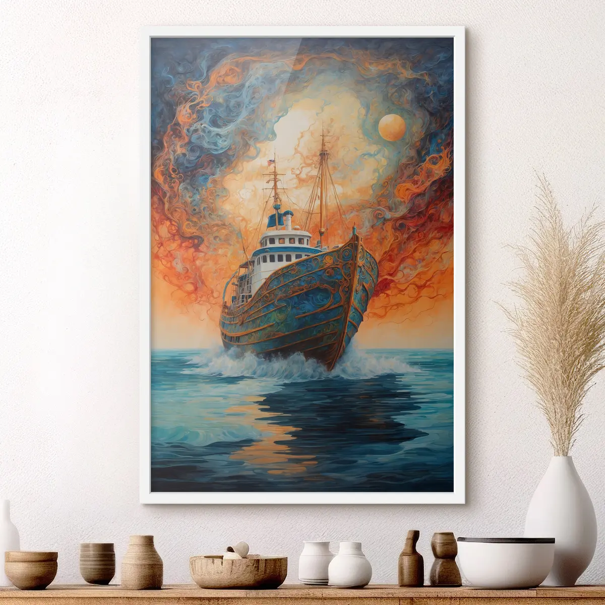 Plakatas Po siaučiančiu dangumi plaukia laivas f36443