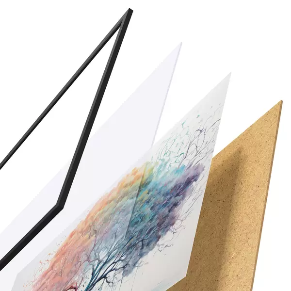 Plakatą sudaro rėmas, pleksiklas, atspausdintas vaizdas ir medžio drožlių plokštės pagrindas. Plakatą galima iš karto pakabinti ant sienos dėl kitoje pusėje esančių laikiklių.