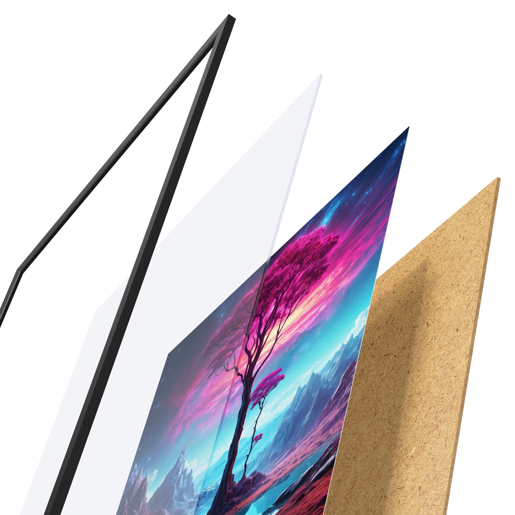 Plakatą sudaro rėmas, pleksiklas, atspausdintas vaizdas ir medžio drožlių plokštės pagrindas. Plakatą galima iš karto pakabinti ant sienos dėl kitoje pusėje esančių laikiklių.