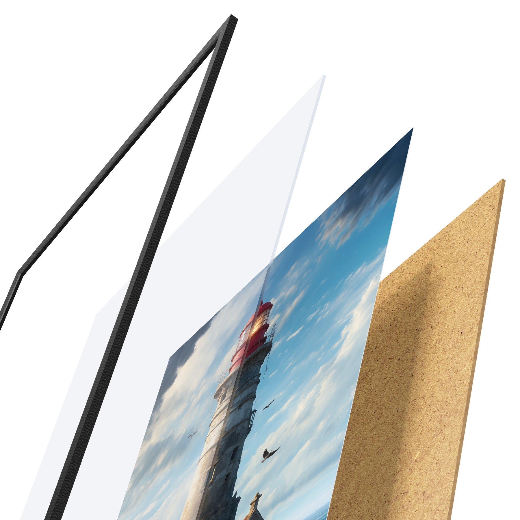 Plakatą sudaro rėmas, pleksiklas, atspausdintas vaizdas ir medžio drožlių plokštės pagrindas. Plakatą galima iš karto pakabinti ant sienos dėl kitoje pusėje esančių laikiklių.