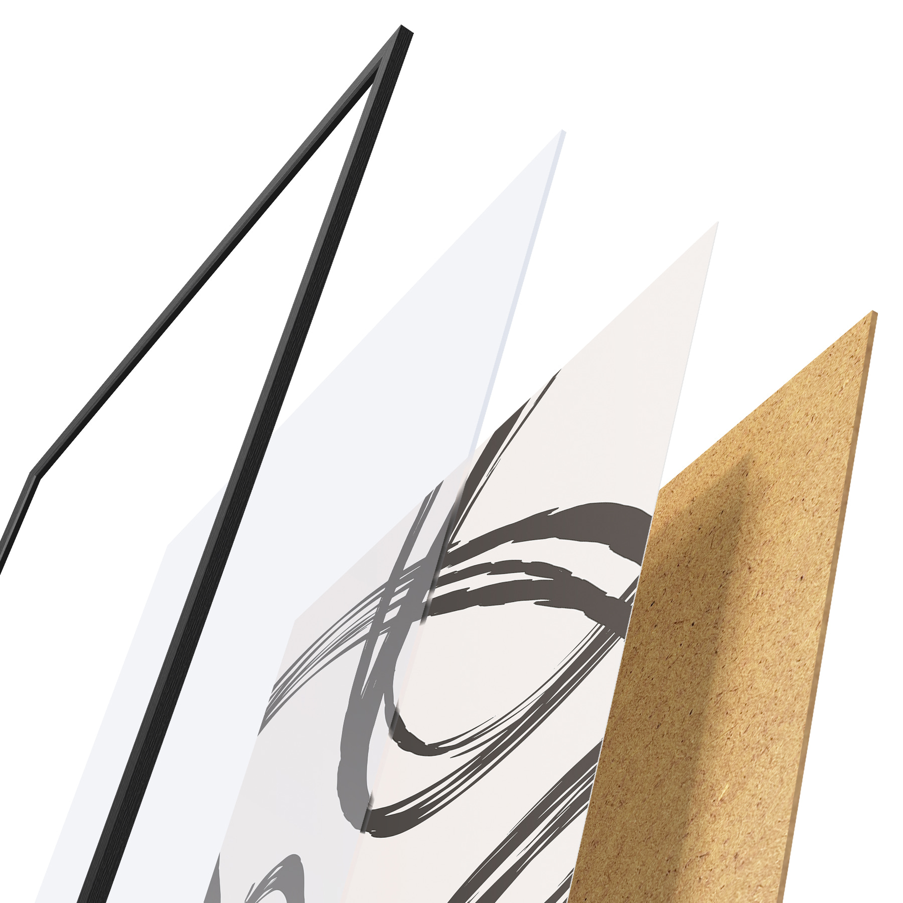 Plakatą sudaro rėmas, pleksiklas, atspausdintas vaizdas ir medžio drožlių plokštės pagrindas. Plakatą galima iš karto pakabinti ant sienos dėl kitoje pusėje esančių laikiklių.