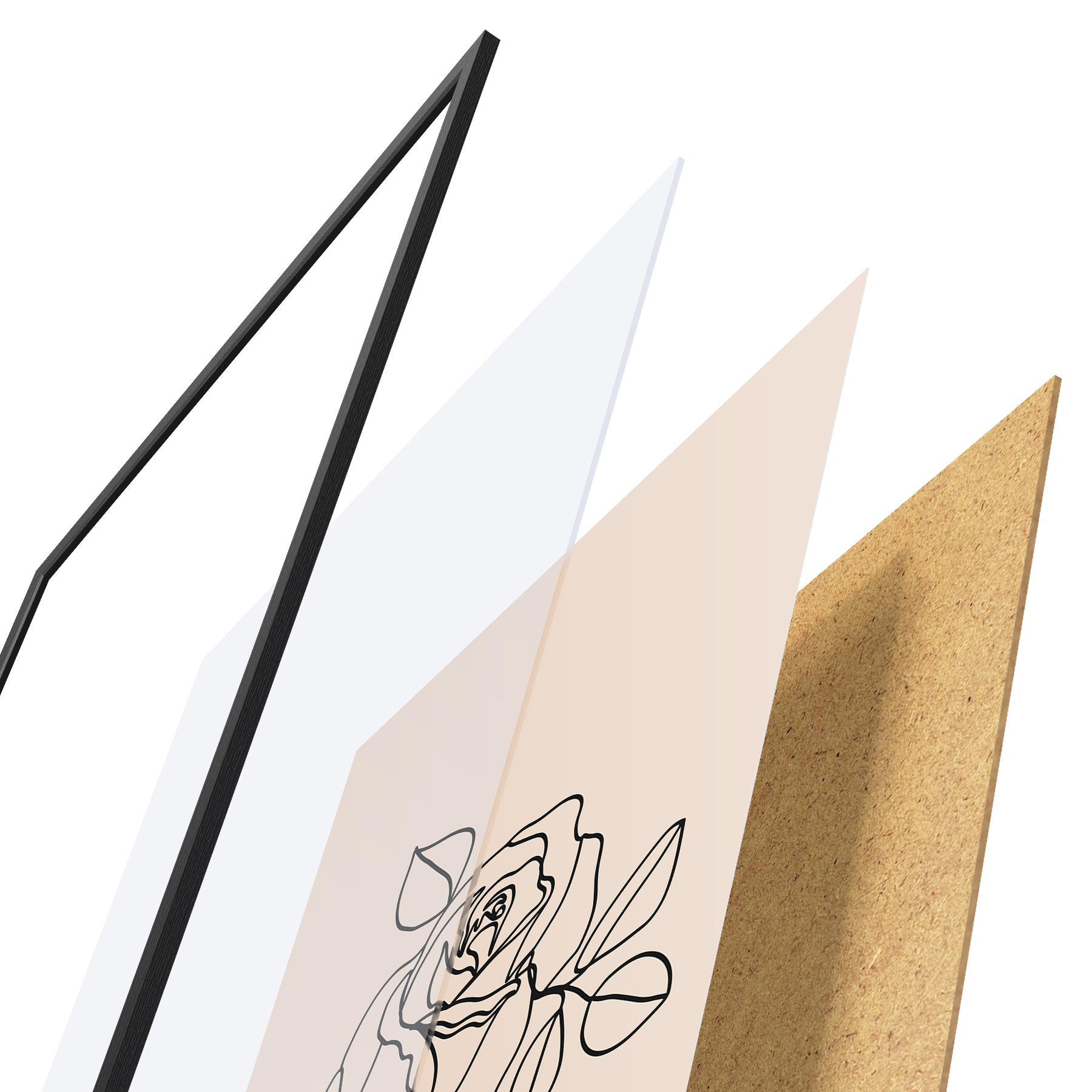 Plakatą sudaro rėmas, pleksiklas, atspausdintas vaizdas ir medžio drožlių plokštės pagrindas. Plakatą galima iš karto pakabinti ant sienos dėl kitoje pusėje esančių laikiklių.