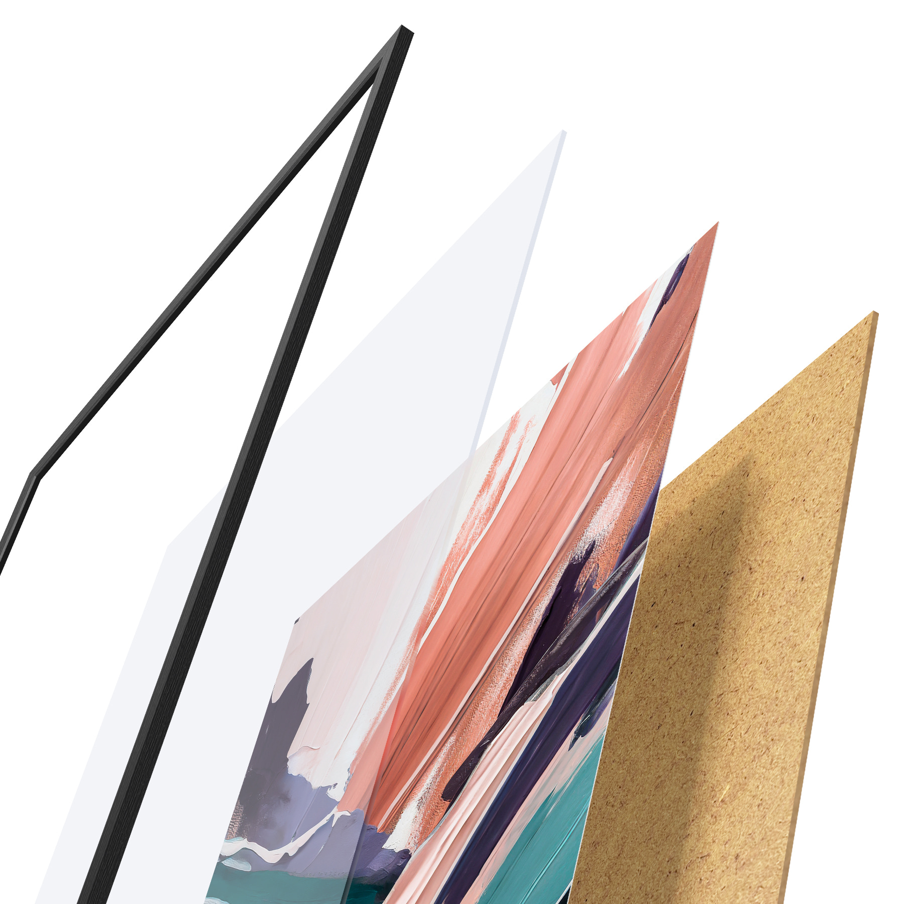 Plakatą sudaro rėmas, pleksiklas, atspausdintas vaizdas ir medžio drožlių plokštės pagrindas. Plakatą galima iš karto pakabinti ant sienos dėl kitoje pusėje esančių laikiklių.