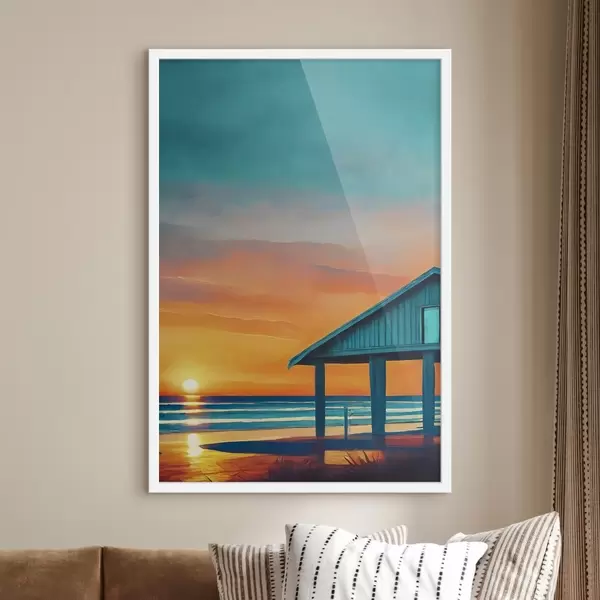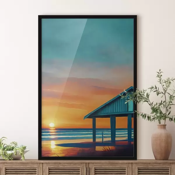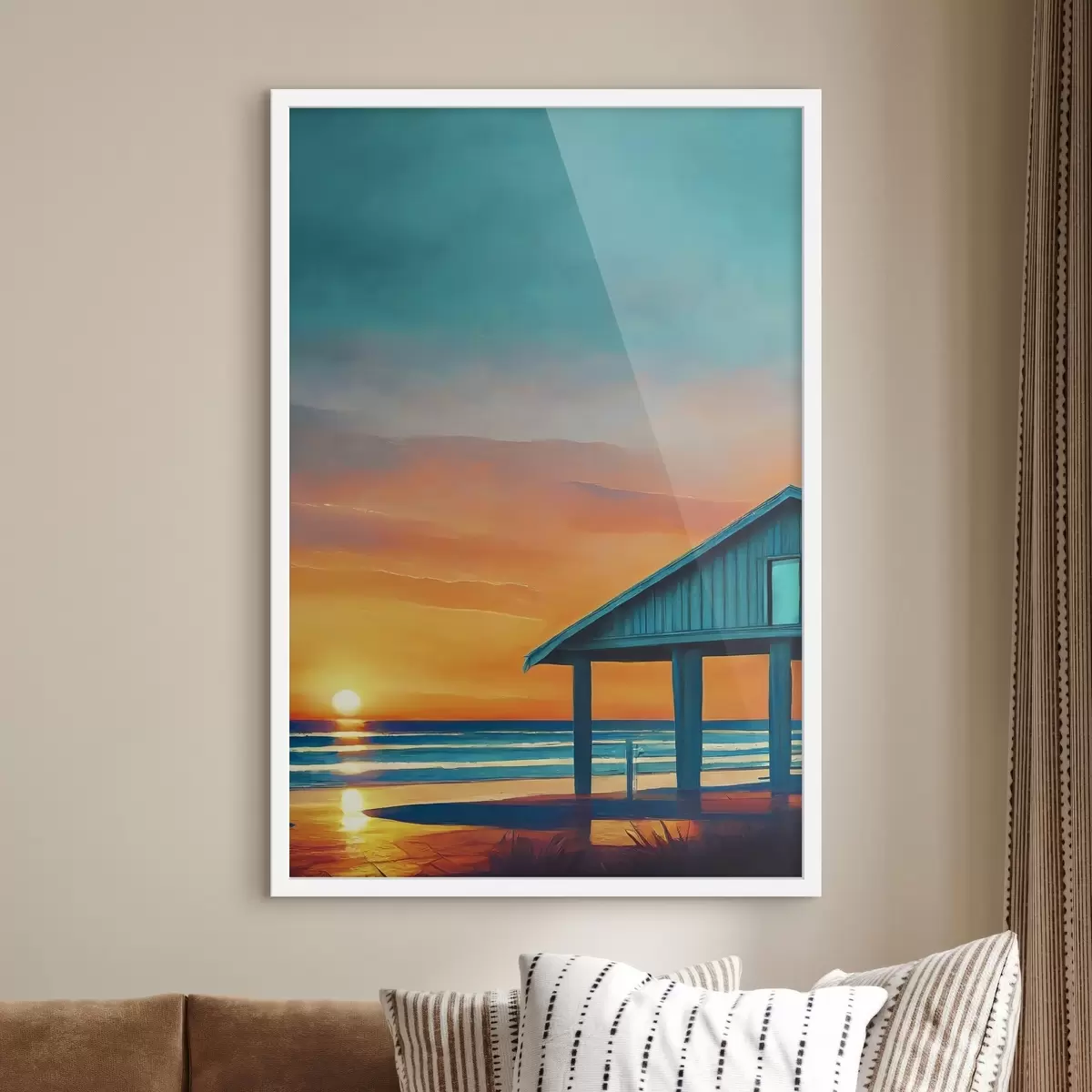 Plakatas Saulėlydžio spalvos namelyje prie vandenyno Ne f36580