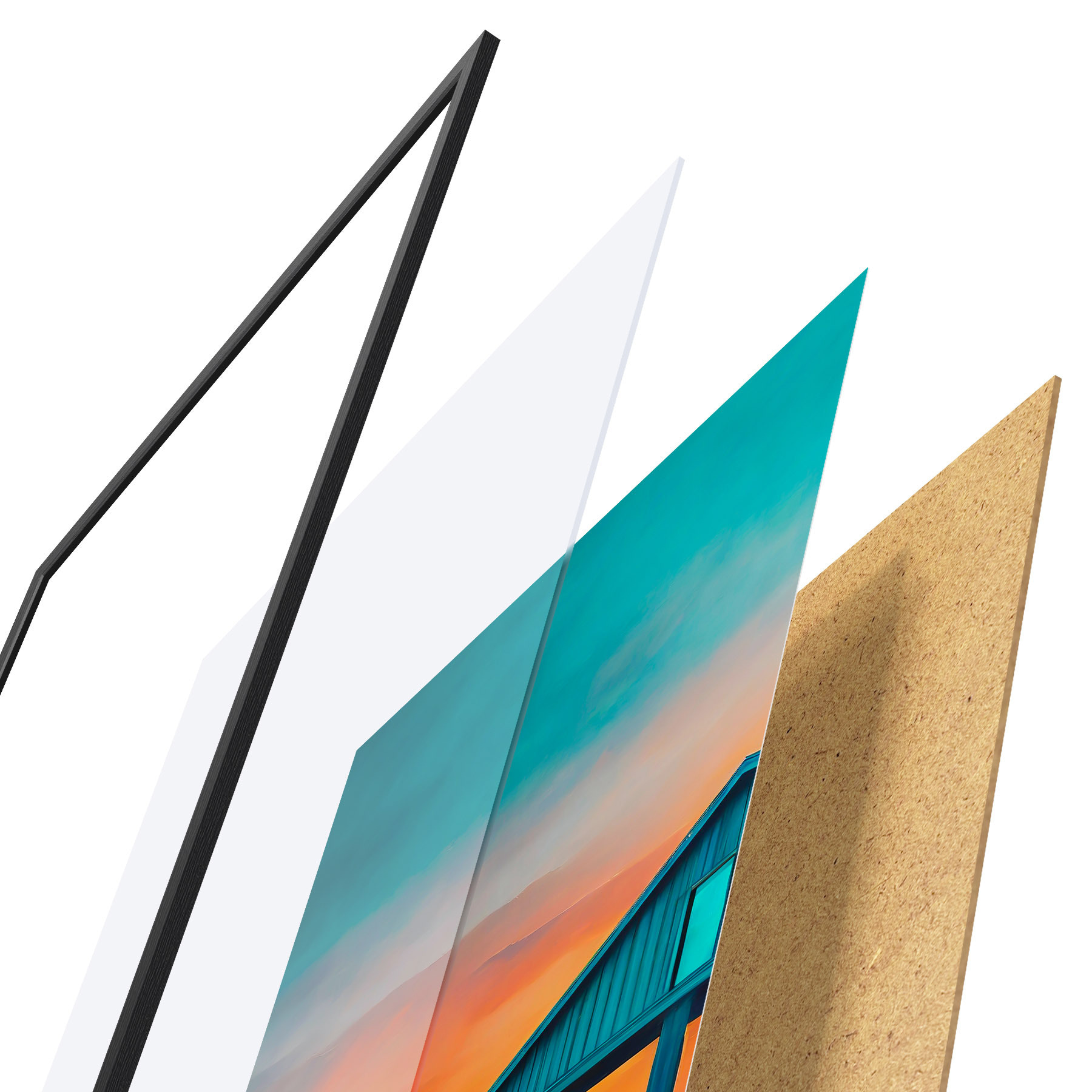 Plakatą sudaro rėmas, pleksiklas, atspausdintas vaizdas ir medžio drožlių plokštės pagrindas. Plakatą galima iš karto pakabinti ant sienos dėl kitoje pusėje esančių laikiklių.