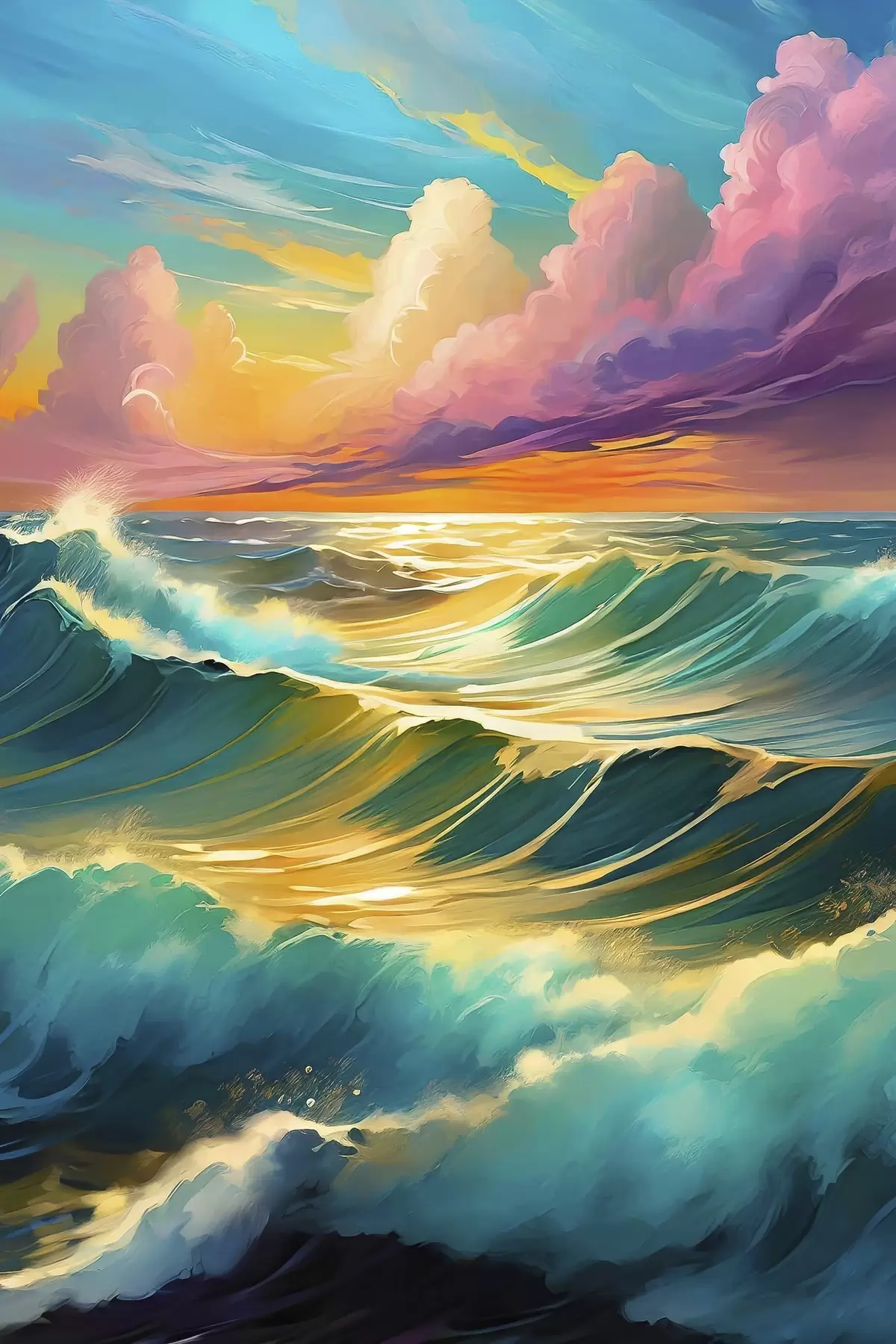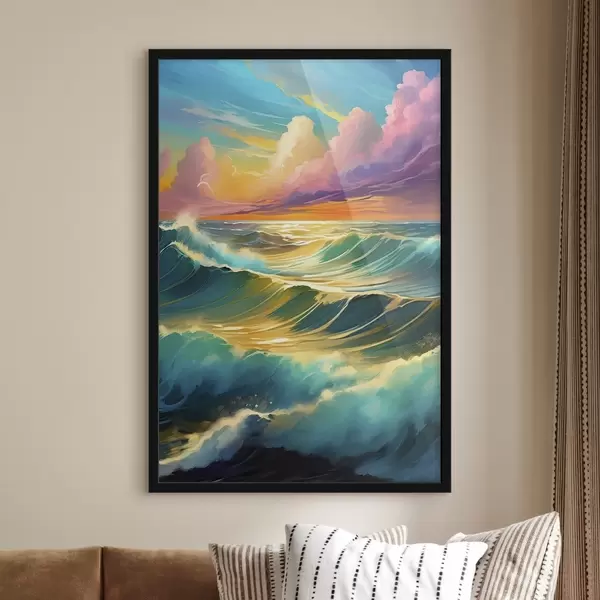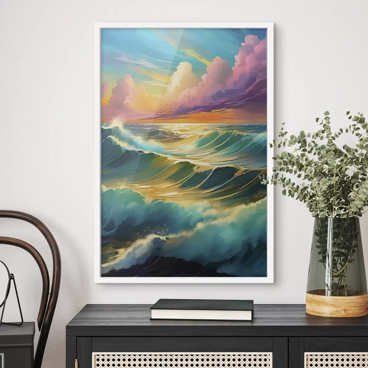 Plakatas Besileidžiančios saulės bangos šoka ryškiomis spalvomis Ne f36587