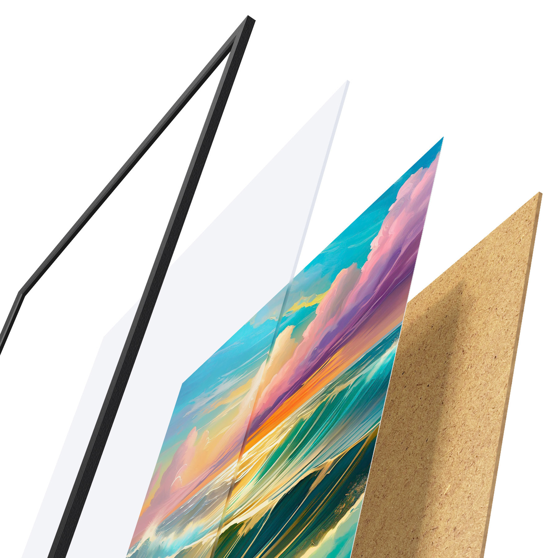 Plakatą sudaro rėmas, pleksiklas, atspausdintas vaizdas ir medžio drožlių plokštės pagrindas. Plakatą galima iš karto pakabinti ant sienos dėl kitoje pusėje esančių laikiklių.