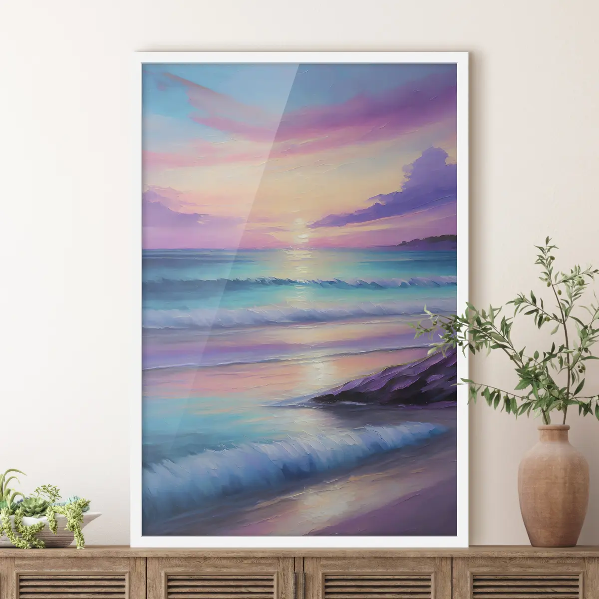 Plakatas Ramus saulėlydis virš ramių bangų f36590