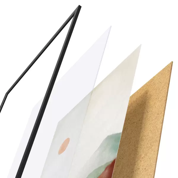 Plakatą sudaro rėmas, pleksiklas, atspausdintas vaizdas ir medžio drožlių plokštės pagrindas. Plakatą galima iš karto pakabinti ant sienos dėl kitoje pusėje esančių laikiklių.