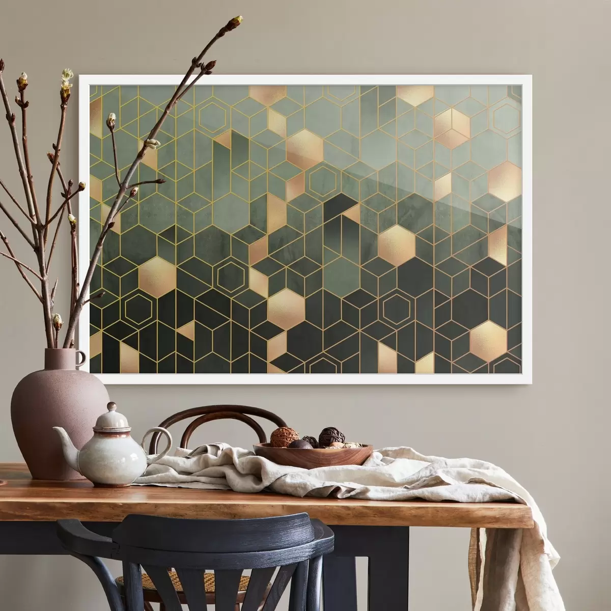 Plakatas Smaragdo ir gintaro geometrinė elegancija Ne f36602v2