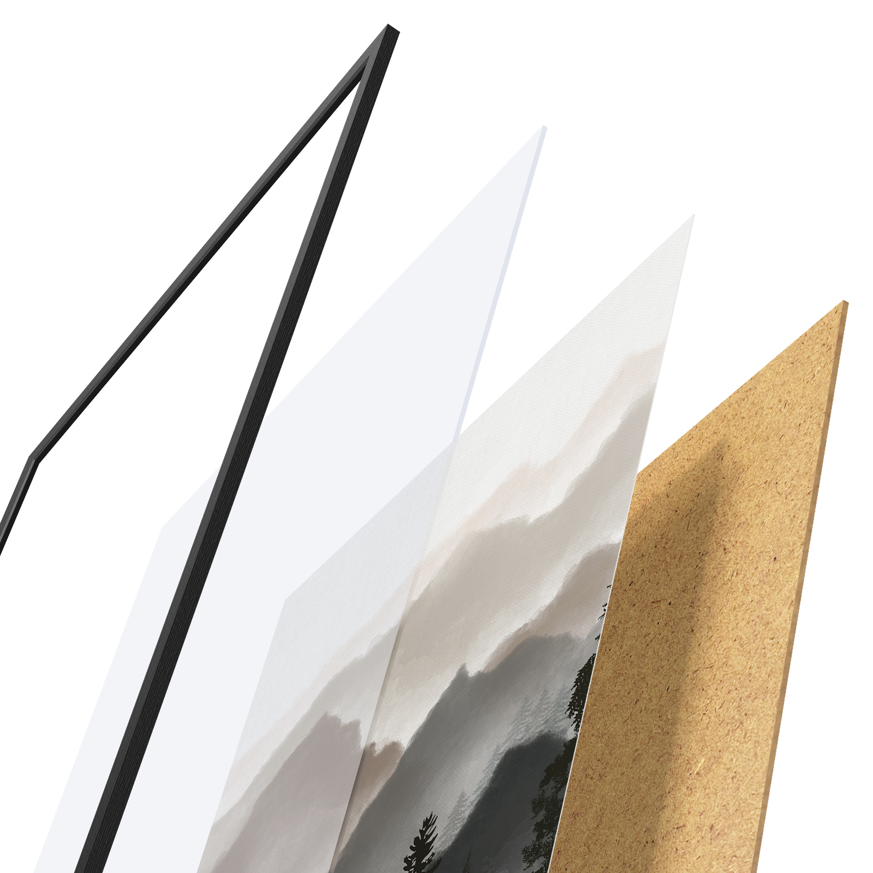 Plakatą sudaro rėmas, pleksiklas, atspausdintas vaizdas ir medžio drožlių plokštės pagrindas. Plakatą galima iš karto pakabinti ant sienos dėl kitoje pusėje esančių laikiklių.