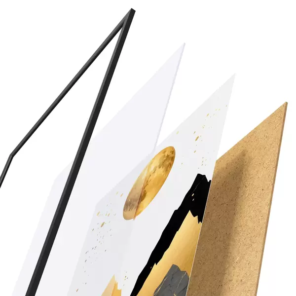 Plakatą sudaro rėmas, pleksiklas, atspausdintas vaizdas ir medžio drožlių plokštės pagrindas. Plakatą galima iš karto pakabinti ant sienos dėl kitoje pusėje esančių laikiklių.