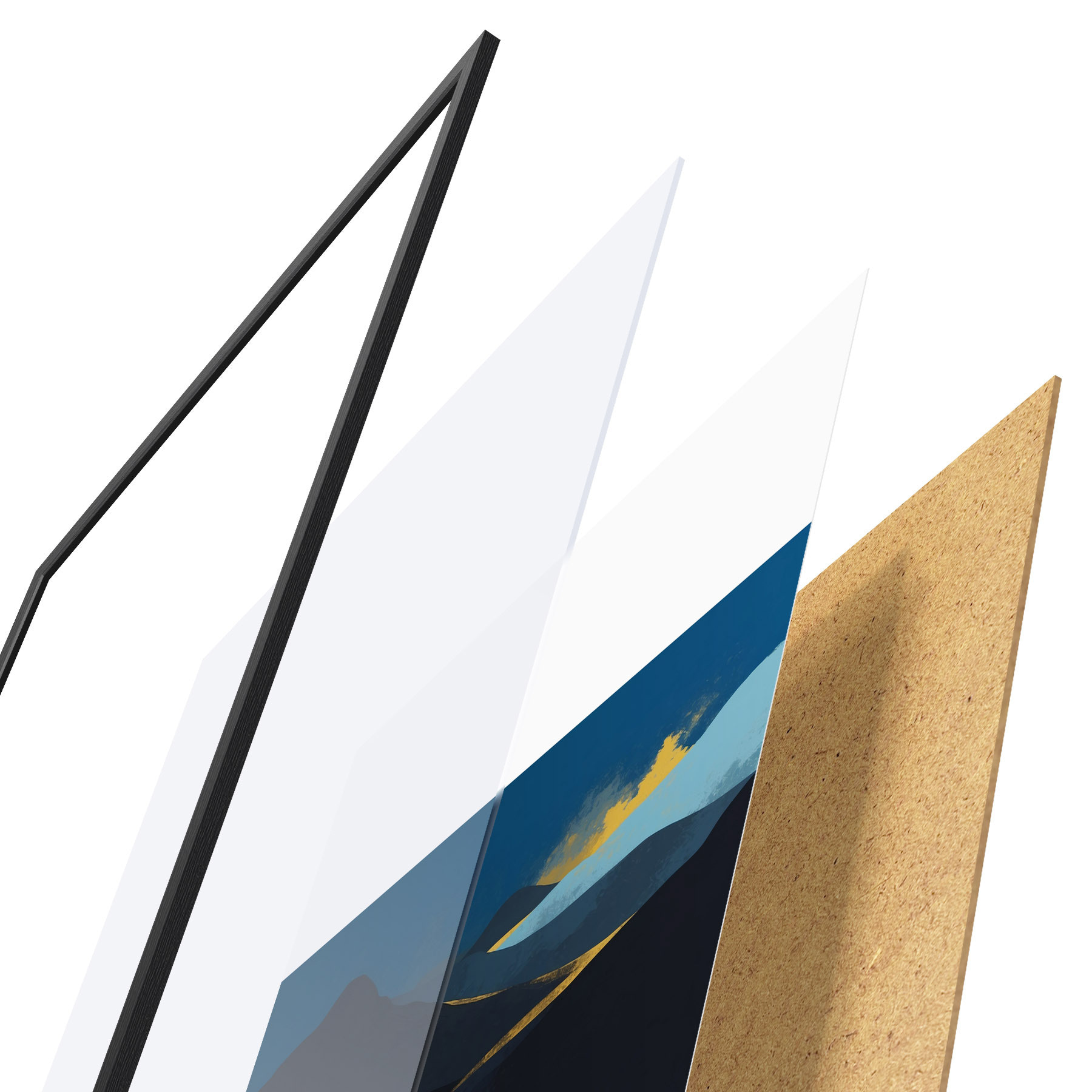 Plakatą sudaro rėmas, pleksiklas, atspausdintas vaizdas ir medžio drožlių plokštės pagrindas. Plakatą galima iš karto pakabinti ant sienos dėl kitoje pusėje esančių laikiklių.