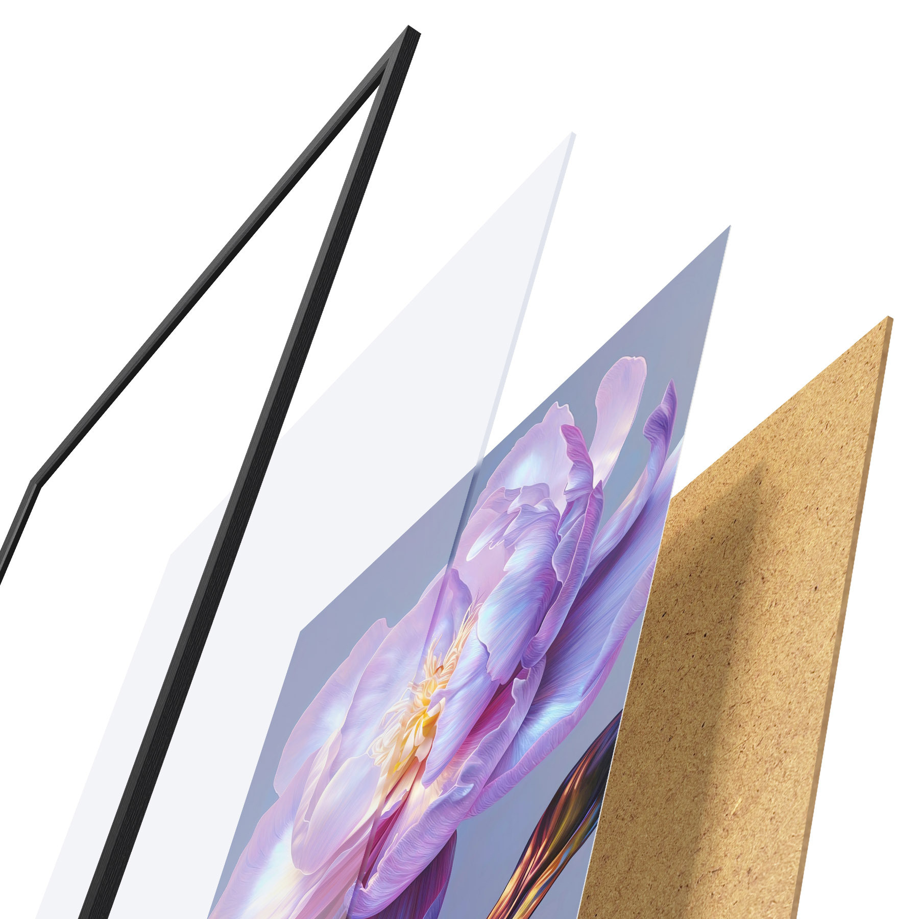 Plakatą sudaro rėmas, pleksiklas, atspausdintas vaizdas ir medžio drožlių plokštės pagrindas. Plakatą galima iš karto pakabinti ant sienos dėl kitoje pusėje esančių laikiklių.