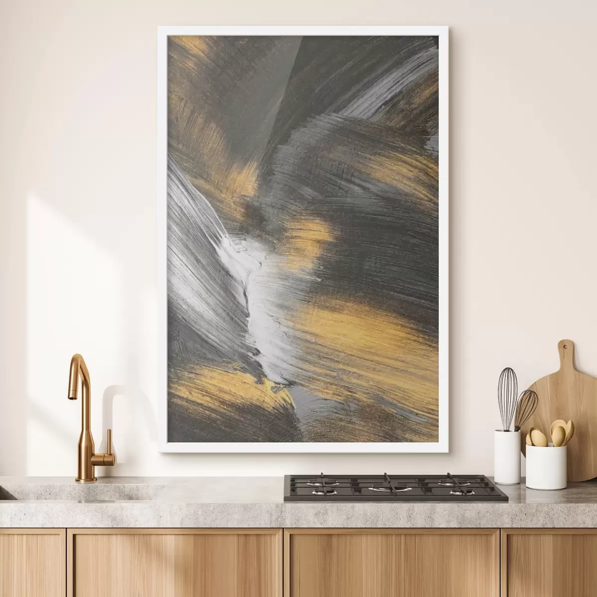 Plakatas Metaliniai teptuko potėpiai susipina tarpusavyje f36673
