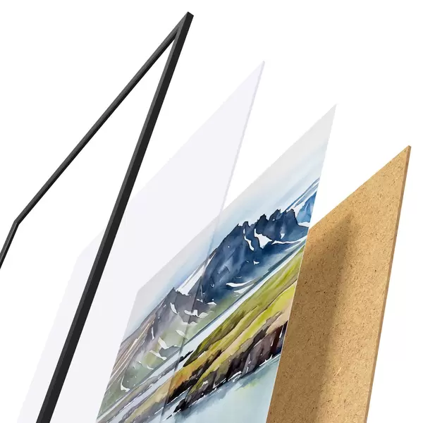 Plakatą sudaro rėmas, pleksiklas, atspausdintas vaizdas ir medžio drožlių plokštės pagrindas. Plakatą galima iš karto pakabinti ant sienos dėl kitoje pusėje esančių laikiklių.