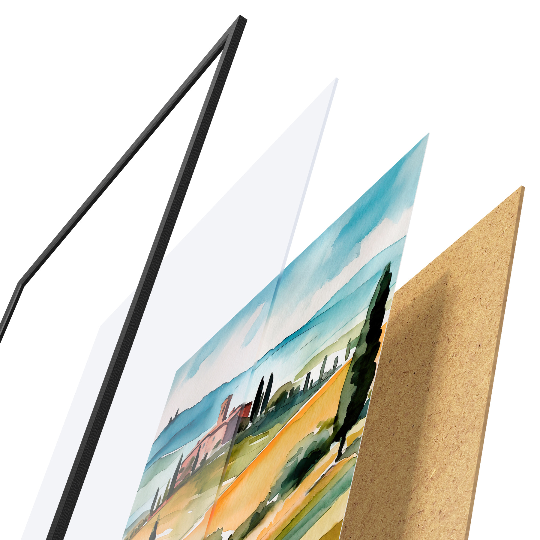 Plakatą sudaro rėmas, pleksiklas, atspausdintas vaizdas ir medžio drožlių plokštės pagrindas. Plakatą galima iš karto pakabinti ant sienos dėl kitoje pusėje esančių laikiklių.