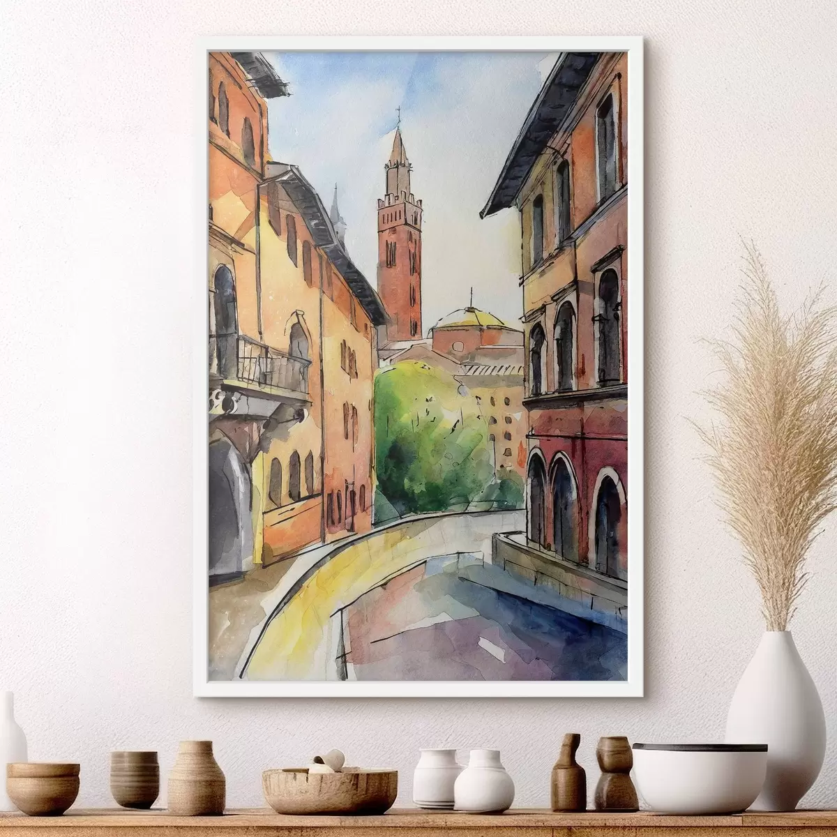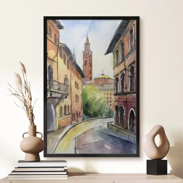 Plakatas Akvarele nutapytas gatvės su pastatais ir medžiais paveikslas Ne f36684