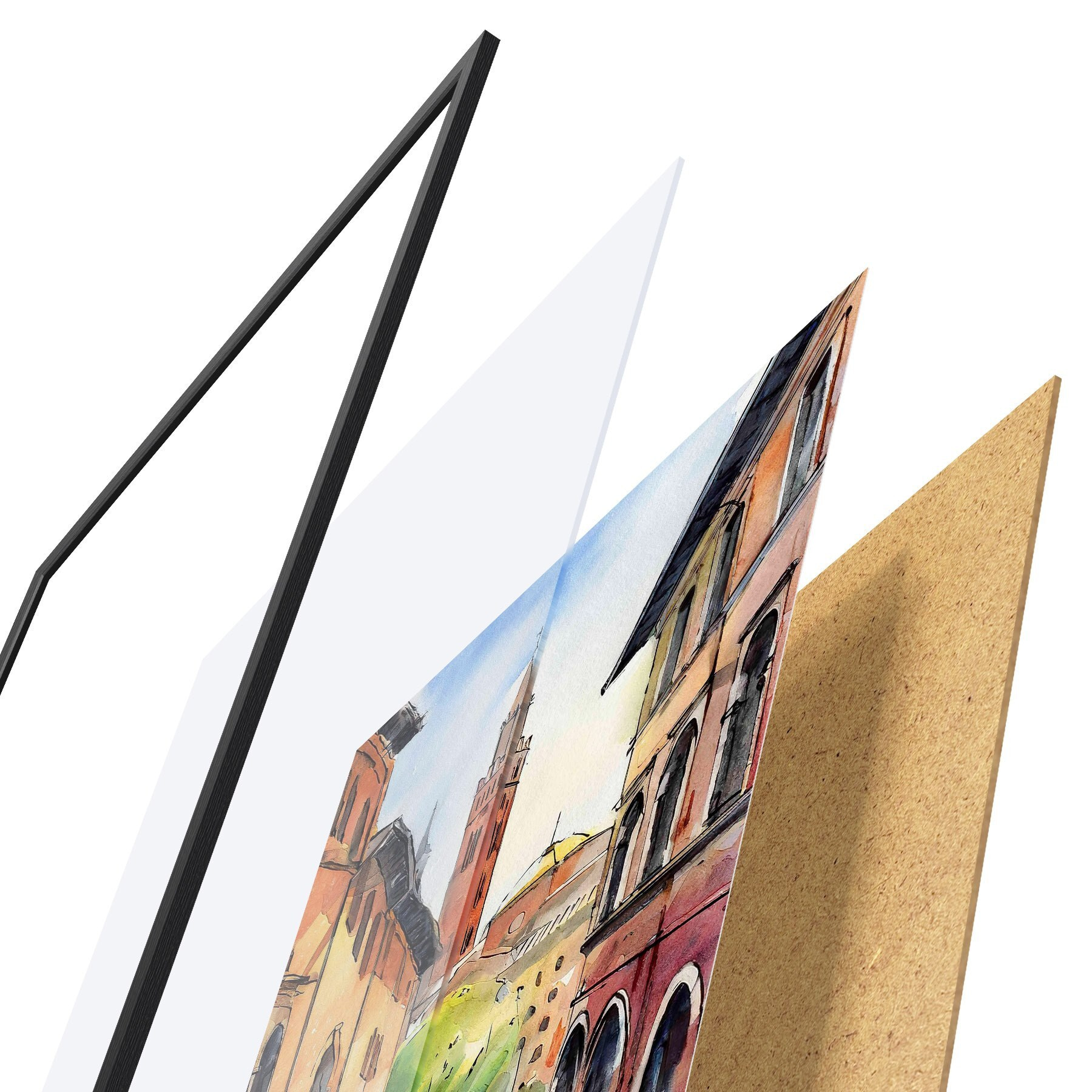 Plakatą sudaro rėmas, pleksiklas, atspausdintas vaizdas ir medžio drožlių plokštės pagrindas. Plakatą galima iš karto pakabinti ant sienos dėl kitoje pusėje esančių laikiklių.