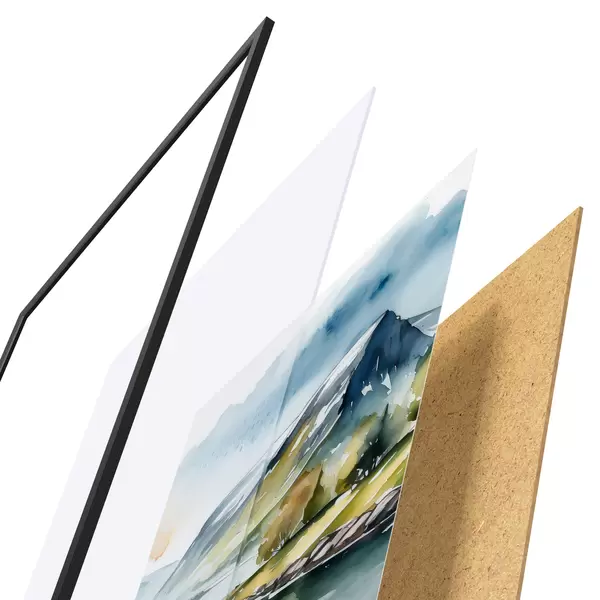 Plakatą sudaro rėmas, pleksiklas, atspausdintas vaizdas ir medžio drožlių plokštės pagrindas. Plakatą galima iš karto pakabinti ant sienos dėl kitoje pusėje esančių laikiklių.