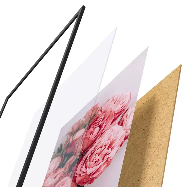 Plakatą sudaro rėmas, pleksiklas, atspausdintas vaizdas ir medžio drožlių plokštės pagrindas. Plakatą galima iš karto pakabinti ant sienos dėl kitoje pusėje esančių laikiklių.