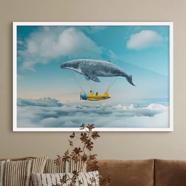Plakatas Banginis ir banginis, pritvirtinti prie mažo lėktuvo Ne f36701