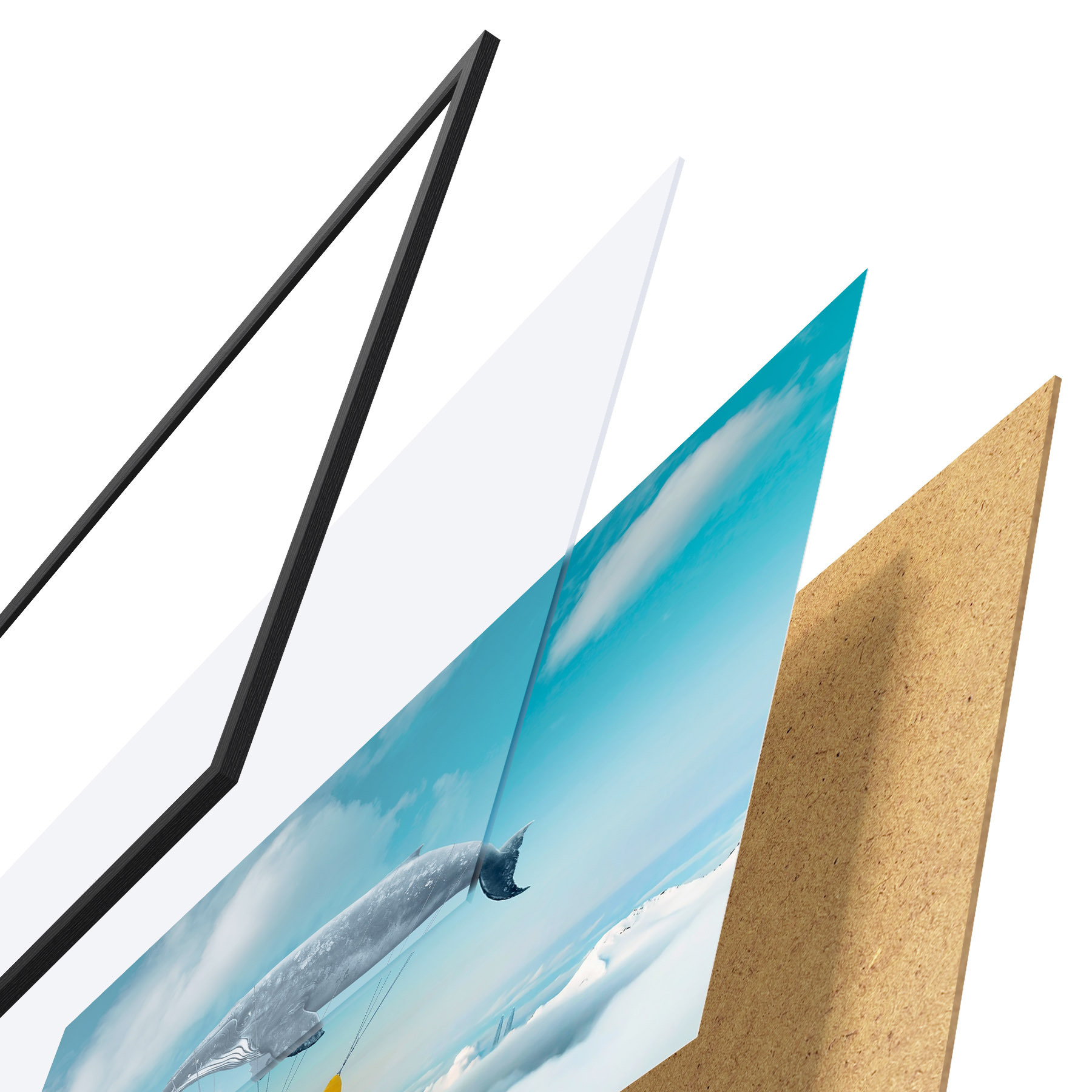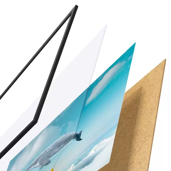 Plakatą sudaro rėmas, pleksiklas, atspausdintas vaizdas ir medžio drožlių plokštės pagrindas. Plakatą galima iš karto pakabinti ant sienos dėl kitoje pusėje esančių laikiklių.