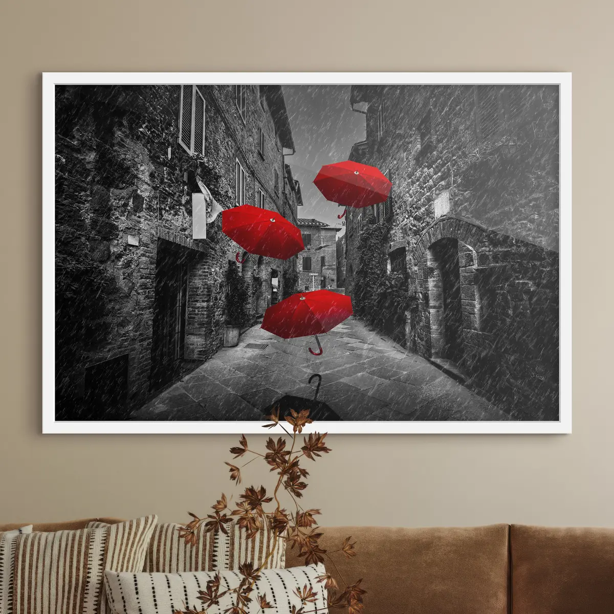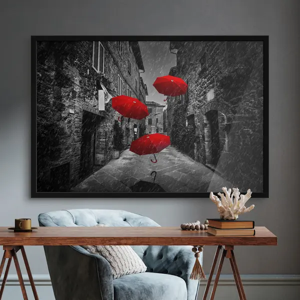 Plakatas Ryškūs skėčiai lietingoje gatvėje f36707
