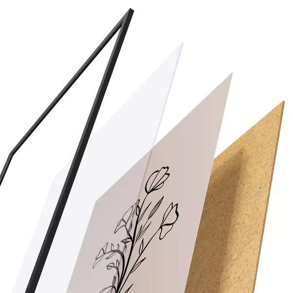 Plakatą sudaro rėmas, pleksiklas, atspausdintas vaizdas ir medžio drožlių plokštės pagrindas. Plakatą galima iš karto pakabinti ant sienos dėl kitoje pusėje esančių laikiklių.