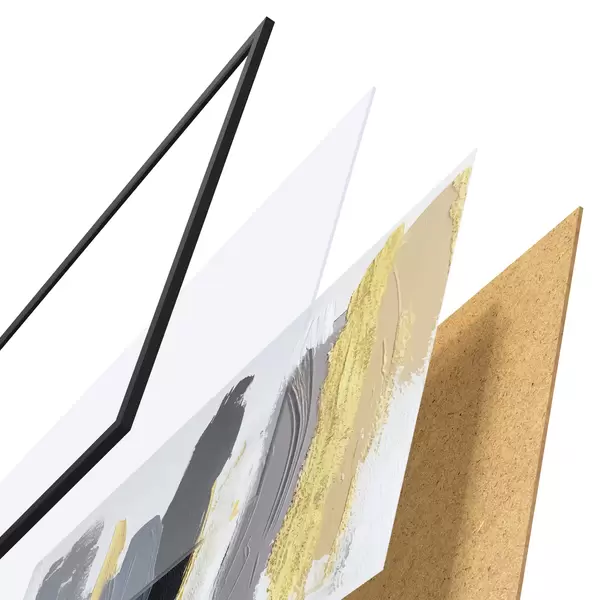 Plakatą sudaro rėmas, pleksiklas, atspausdintas vaizdas ir medžio drožlių plokštės pagrindas. Plakatą galima iš karto pakabinti ant sienos dėl kitoje pusėje esančių laikiklių.