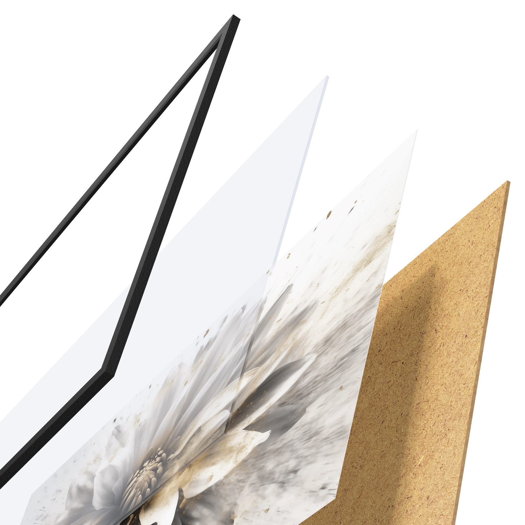 Plakatą sudaro rėmas, pleksiklas, atspausdintas vaizdas ir medžio drožlių plokštės pagrindas. Plakatą galima iš karto pakabinti ant sienos dėl kitoje pusėje esančių laikiklių.