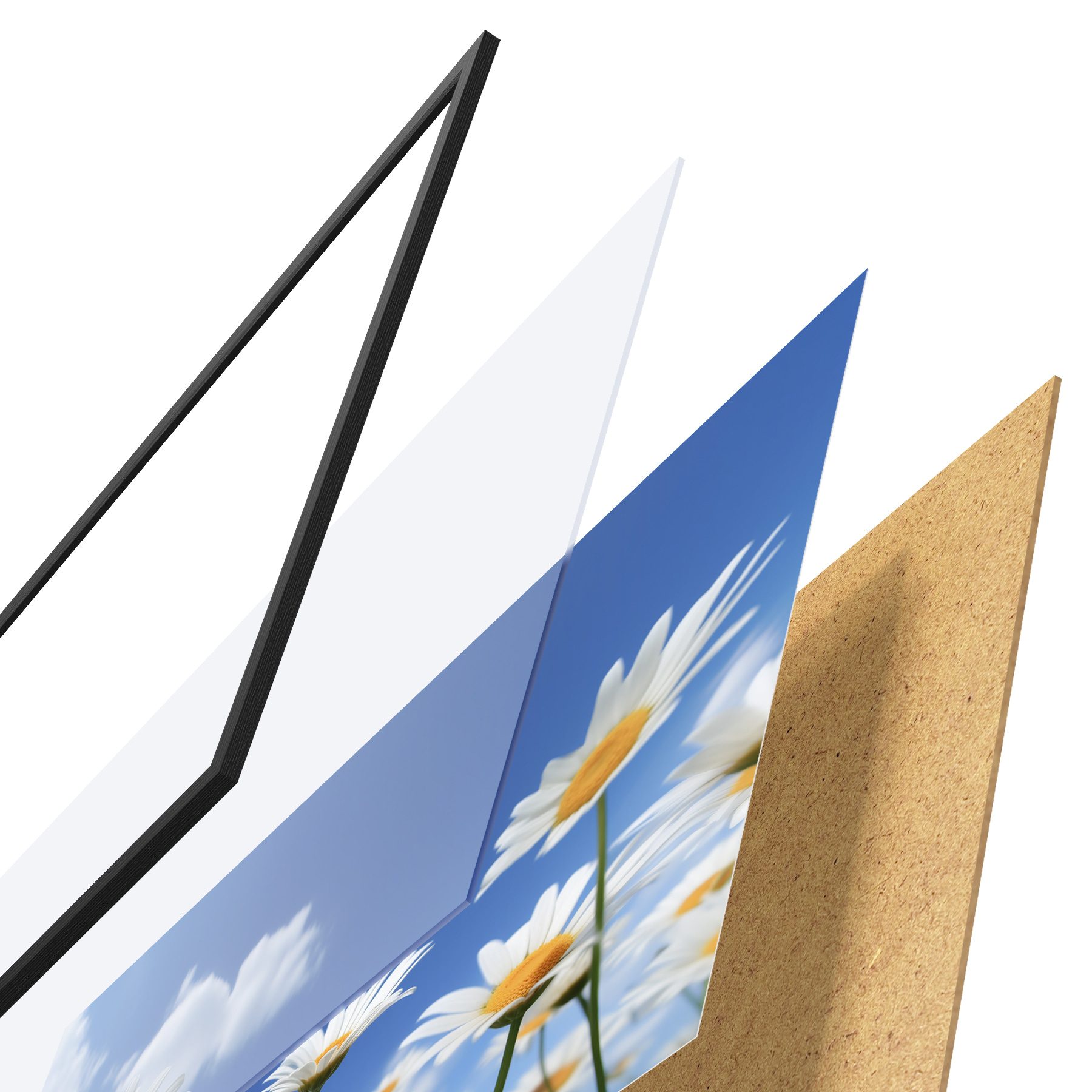 Plakatą sudaro rėmas, pleksiklas, atspausdintas vaizdas ir medžio drožlių plokštės pagrindas. Plakatą galima iš karto pakabinti ant sienos dėl kitoje pusėje esančių laikiklių.