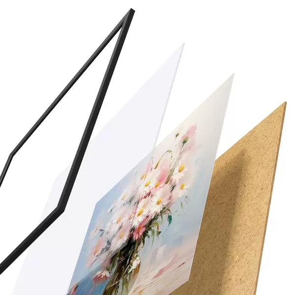 Plakatą sudaro rėmas, pleksiklas, atspausdintas vaizdas ir medžio drožlių plokštės pagrindas. Plakatą galima iš karto pakabinti ant sienos dėl kitoje pusėje esančių laikiklių.